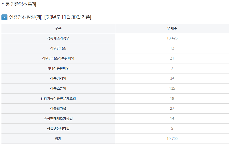 식품 HACCP 인증업소 현황 ['23년도 11월]