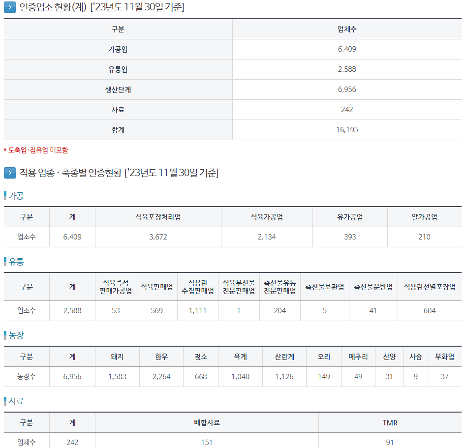 축산물 HACCP 인증업소 현황 [23년 11월 ]